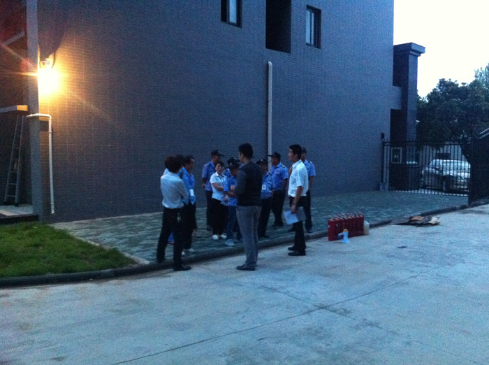2013年9月11日19时,金凯公寓突然响起一阵急促的消防警报,A栋7层突发“火情”。收到火警报警,工作人员即刻成立突发事件处理小组,启动《金凯公寓消防疏散预案》,10分钟内集中15名保安队员,拉响了楼道消防警报器。租住人员在不知消防演练的情况下,有在洗澡的穿上短裤、手拿湿毛巾往消防通道里跑,有在打扑克的手里拿着扑克往外跑,还有一个老奶奶抱着孙女随着人群往安全通道跑,保安队员见状扶着老奶奶,抱着孩子走向安全通道。经保安队员每层楼检查,租住人员全部撤离。经测算,住18楼的人员通过安全通道到地面,需7-10分钟左右,安全通道无障碍。各小组成员迅速赶赴“火灾”现场,对火情进行控制,同时对楼内所有住户进行紧急疏散。所有人员惊魂未定逃生到安全集合点时,才发现原来是一次消防演练。