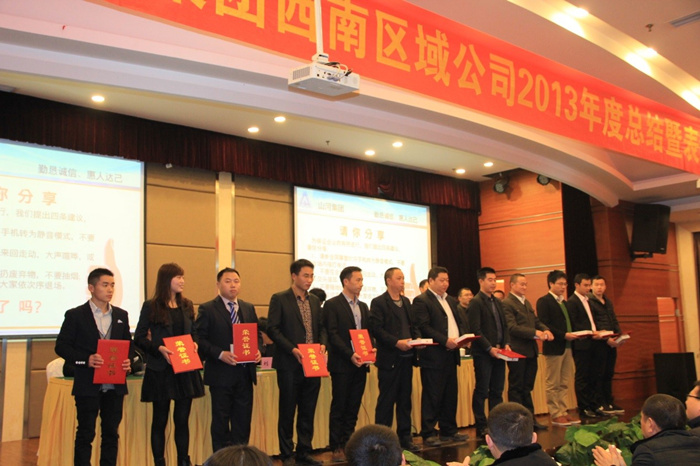 西南区域公司总经理丁贤林在会议上以“理清思路、升级管理、品牌共建、成果共享”为主题的报告,他首先感谢全体员工一年来的辛勤努力工作,并充分肯定了公司员工一年来各项工作所取得的成绩。并对西南公司整体及各核算单元运营模式,2013年西南公司总体运营效果及分析,以及2014年西南区域公司运营目标及措施做了具体报告。