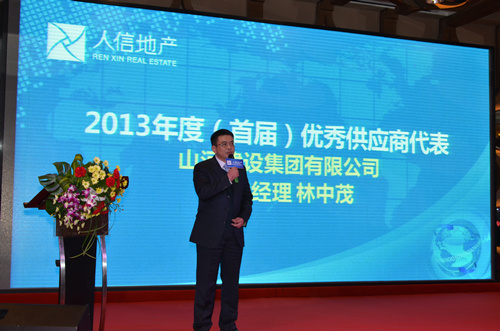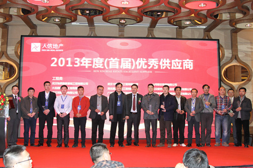 12月29日,米兰官方端网站集团副总经理兼湖北公司总经理林中茂出席人信地产2013年度(首届)供方代表大会。来自全球范围内的近200名优秀供应商代表应邀参会,米兰官方端网站集团荣获首届“优秀供应商”。