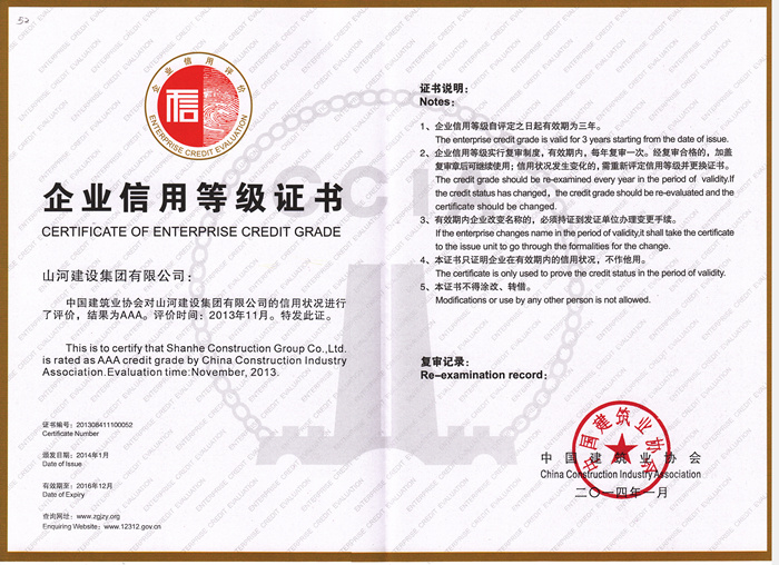 全国建筑业AAA级信用企业由中国建筑业协会颁发,是建筑行业信用最高奖项。此次评价严格按照《建筑业企业信用评价试行办法》规定的程序进行。经企业自愿申报、各地区和有关行业、建筑业协会推荐、在建设系统相关网站上排查、专家评价组初评、全国建筑业企业信用评价工作指导委员会审定和网上公示。通过层层筛选,最终,包括米兰官方端网站建设集团有限公司在内的93家企业评定为2013年度全国建筑业AAA级信用企业。