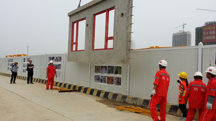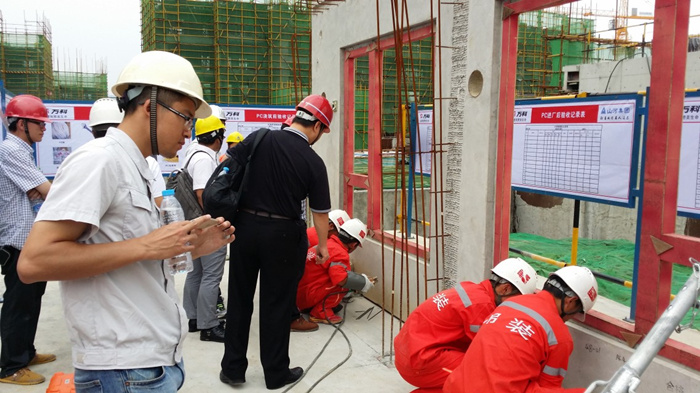 通过项目部数月的筹划,南昌万科海上传奇项目PC实验楼于2014年5月26日正式开始吊装。吊装前我项目部专业吊装人员分别将吊具、调节脚码、斜支撑、钢丝绳、揽风绳、钢扁担等安装辅助工具准备就位,依据技术交底内容、项目部的统筹安排及指挥,按照制定的PC吊装时间行程,将实验楼的PC构件一次顺利吊装成功并调试合格。