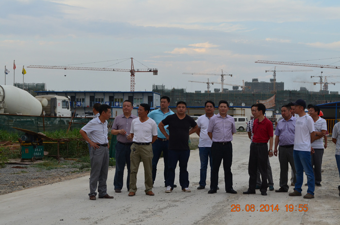 8月26日,程理财董事长一行在米兰官方端网站集团副总经理林金安、新疆区域公司总经理曾秋喜、新疆鹏天房地产开发有限公司总经理郑承碌鹊呐阃下,先后查看了“米兰官方端网站•东湖世家”、“米兰官方端网站•福泰花园”、“东湖公园”等项目工地,对开发、建设项目进行了现场指导和帮带。