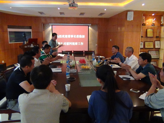 5月26日下午,集团公司董事长程理财在陪同黄冈市援建代表团来疆工作的间隙,亲临新疆区域公司与机关工作人员座谈交流,集团公司副总经理林金安、新疆公司总经理曾秋喜全程陪同。