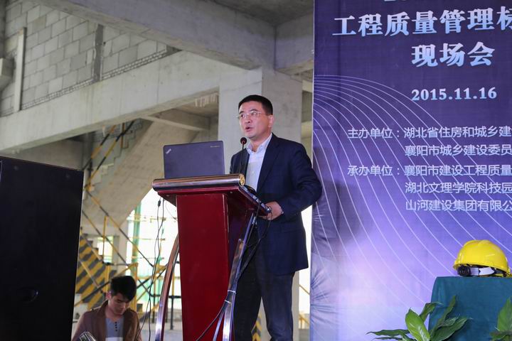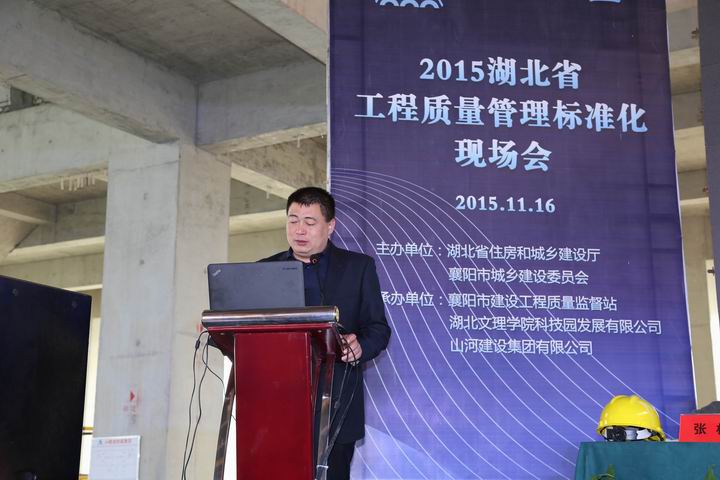11月16日上午,湖北省工程质量管理标准化现场会在湖北文理学院科技园工研院项目召开。省质安总站副站长董文斌,襄阳市建委副主任卢一平、质检站党委书记倪海青、站长张林、副站长黄先明,湖北文理学院校党委常委副校长魏跃春,湖北文理学院科技园发展有限公司副总经理寇国良,米兰官方端网站集团常务副总经理兼湖北公司总经理林中茂、湖北公司副总经理罗定军、詹必强等参加了会议。襄阳市工程质量监督检查站站长张林主持会议。