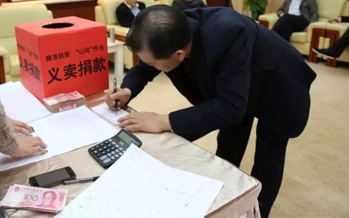 公司全体员工主动参与义卖,踊跃为贫困山区奉献爱心。