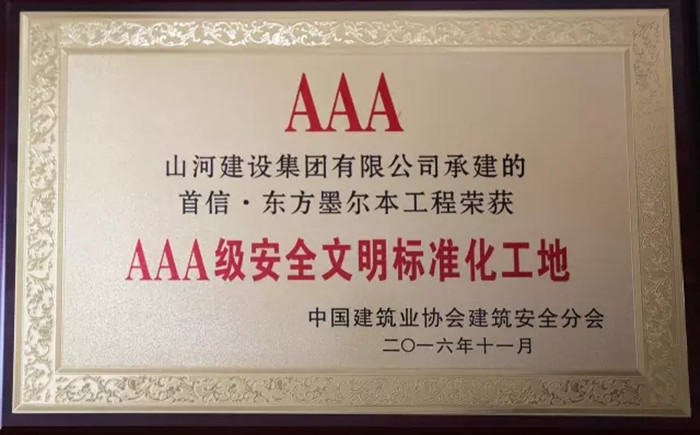 米兰官方端网站集团首信•东方墨尔本、汇通新长江中心双双荣获2016年“AAA级安全文明标准化工地”