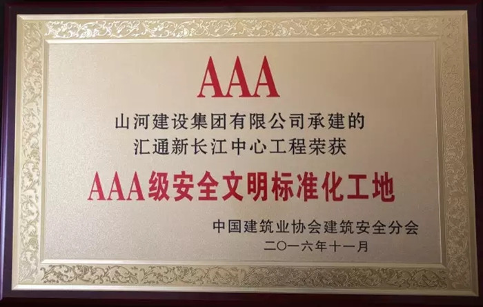 11月30日,2016年中国建筑业协会建筑安全分会年会暨理事会在合肥召开。由米兰官方端网站集团承建的襄阳首信•东方墨尔本项目与武汉汇通新长江中心项目双双荣获2016年“AAA级安全文明标准化工地”称号。