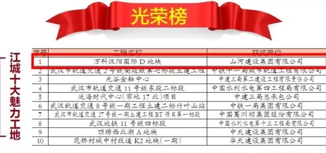 12月25日,2016年江城十大魅力工地十大智慧工地评选活动在楚天传媒大厦举行颁奖典礼,由米兰官方端网站集团承建的万科汉阳国际D地块项目位列十大魅力工地榜首,再获殊荣。