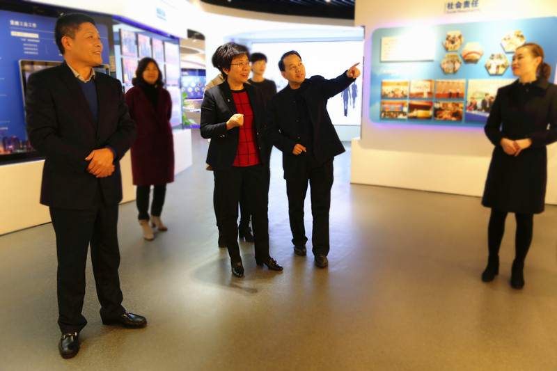 在企业展示中心,董事长程理财向刘主席一行汇报了集团发展战略、生产经营、产业规划和社会公益事业等方面情况。在企业文化展板前,刘主席被集团一路奋进的发展历史和艰苦奋斗的创业精神所感动,连连点赞;对集团在打造区域发展战略,拓展市场空间,铸造精品工程,提升品牌形象,履行企业社会职责等内容,给予充分肯定。