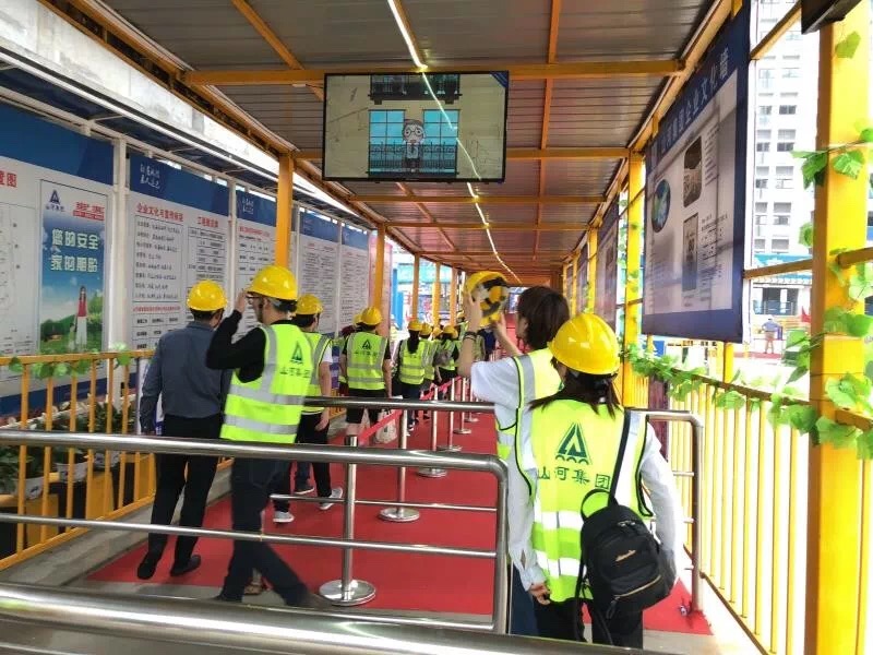 步入工地,一股绿色、科技感扑面而来。“建造绿科技”、“匠造传奇”,向来访者传递了SSGF项目的精髓。项目技术人员亲自为来访客户耐心讲解工程建造中的程序、细节和标准。