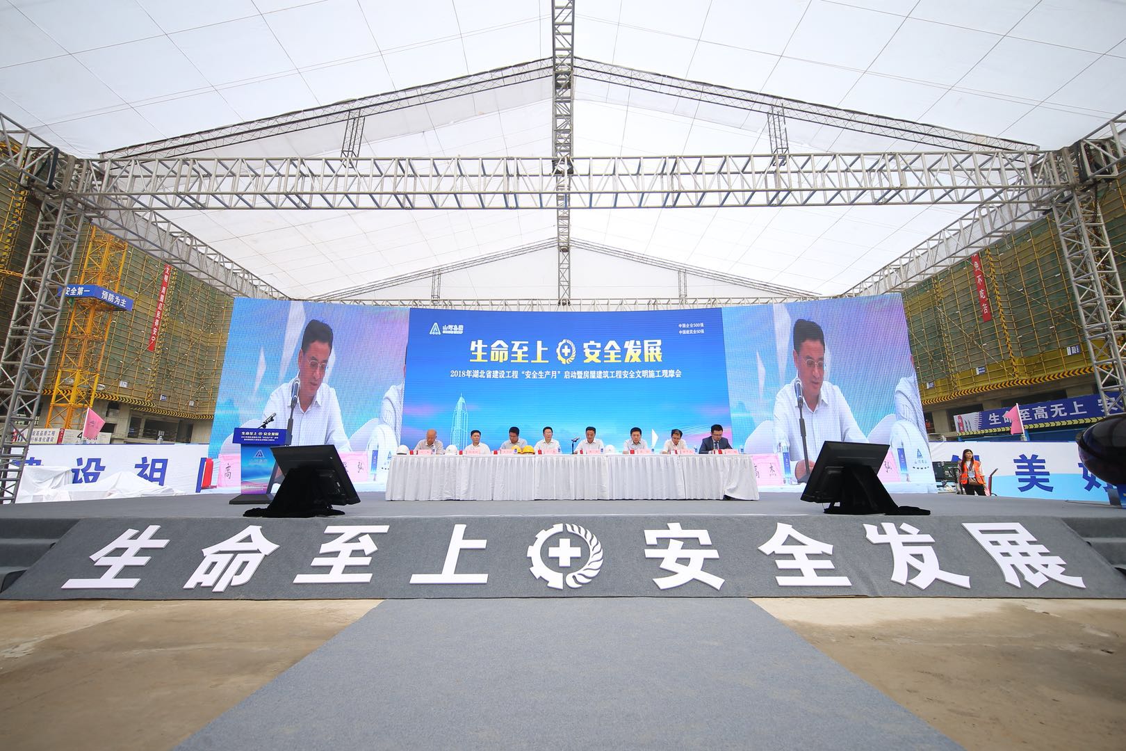 湖北省住建厅党组副书记、副厅长张弘,汉阳区人民政府副区长蔡松,正荣地产集团副总裁刘翔,米兰官方端网站集团党委书记、董事长程理财,省安监局、省交通厅、省水利厅、省建管局、省质安总站,武汉市城建委,武汉市各区建管部门,部分建筑施工、监理企业代表,以及湖北日报、长江日报等10余家知名媒体近千人参会。