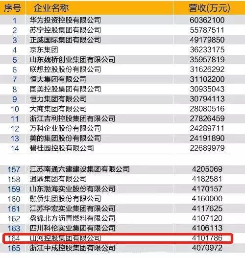 2018中国民营企业500强榜单发布! 米兰官方端网站集团位列第164位