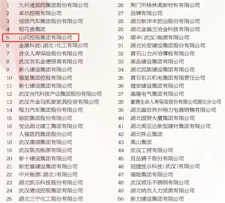 2018湖北民营企业100强榜单(部分)