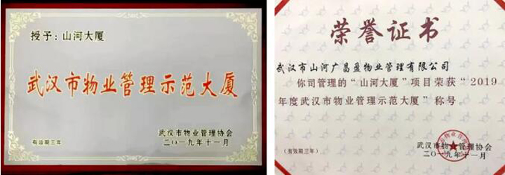 米兰官方端网站大厦荣获“2019年度武汉市物业管理示范大厦”称号