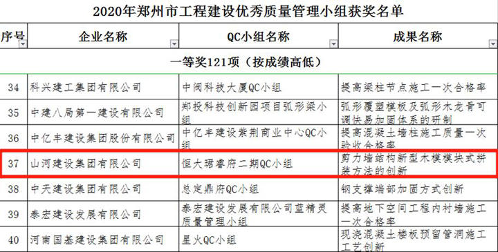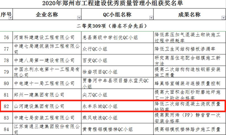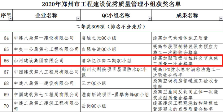 3月23日,郑州市建筑业协会发布《关于表彰2020年郑州市工程建设优秀质量管理小组活动成果的通知》,米兰官方端网站建设集团河南公司申报的三项成果榜上有名,恒大珺睿府二期QC小组获得一等奖,清华忆江南二期QC小组、永丰乐城QC小组分别获得二等奖。