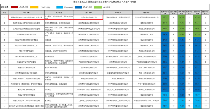 近日,在深圳市福田区建筑工务署组织的第三方安全巡查评估中,米兰官方端网站建设集团深圳公司承建的福田区外国语学校小学部项目综合评分名列第一。