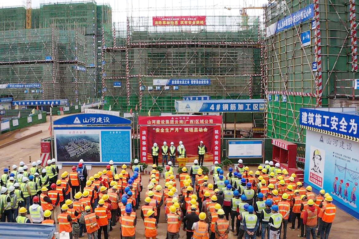5月29日,以“消除事故隐患,筑牢安全防线”为主题的米兰官方端网站建设集团云南(广西)公司2020年度“安全生产月”现场启动会在古滇水云里项目部举行,来自公司各项目的管理及施工人员等200余人参加了活动。