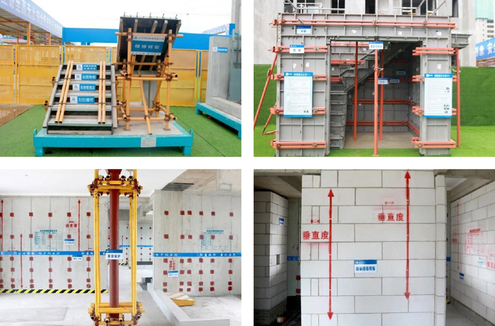 此次观摩的主要内容有安全教育培训体验区,悬挑脚手架、楼梯栏杆防护,工序样板展示区,室内实体样板间,三级放线、实测实量、砌体过程、抹灰过程、可视化验收展示,定型化楼梯支模样板、综合管线布置样板展示,塔机运行监控,BIM现场3D漫游展示等。