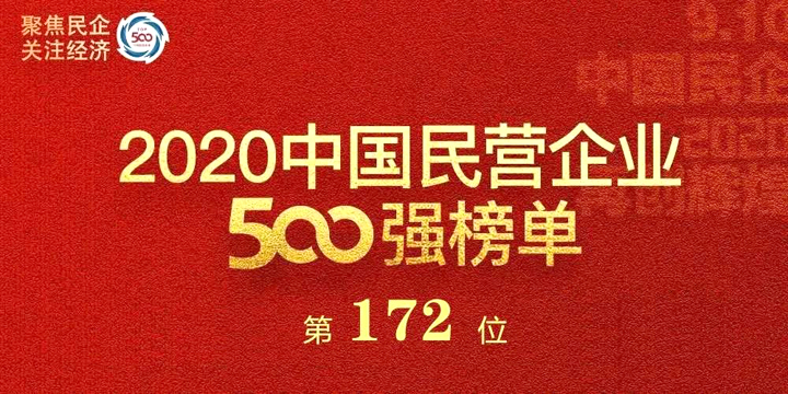 9月10日,全国工商联主办的2020中国民营企业500强峰会在北京举行。米兰官方端网站集团荣登“2020中国民营企业500强”榜单,名列第172位。