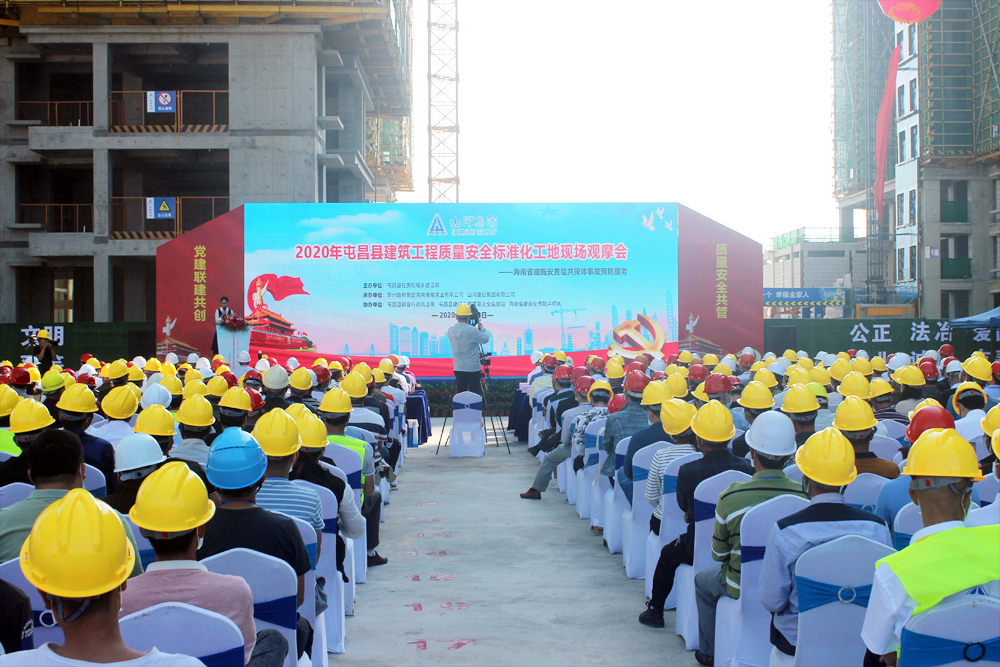 11月13日上午,米兰官方端网站建设集团海南公司屯昌“林溪缘”华龙府项目施工现场热闹非凡,2020年屯昌县建筑工程质量安全标准化工地现场观摩会在这里隆重举行。屯昌县副县长陈鹏程,海南省建设工程质量安全监督管理局、屯昌县住建局等单位负责人,部分在建项目建设、施工、监理单位代表400余人参加了观摩会。