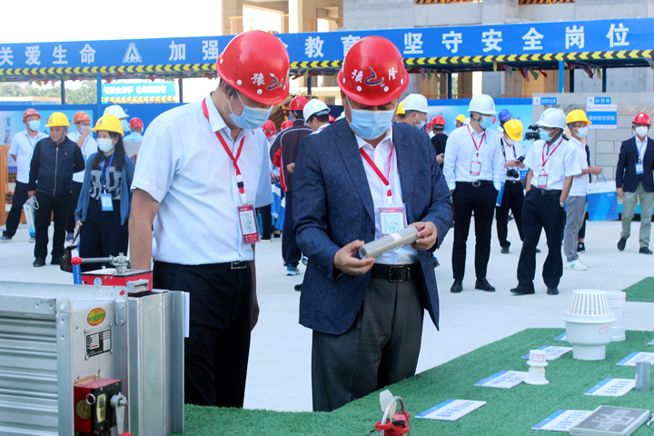现场质量安全观摩环节,与会代表先后参观了VR安全体验馆、工法样板、主体结构样板、屋面样板、抹灰样板间等多个展区,对现场工艺做法进行了互动交流。在VR安全体验馆,大家佩戴VR设备,通过虚拟的场景模拟体验,身临其境地感受了施工现场的“危险时刻”。