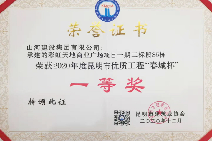 [云南公司]米兰官方端网站集团云南(广西)公司远洋彩虹天地商业广场项目喜获“春城杯”一等奖