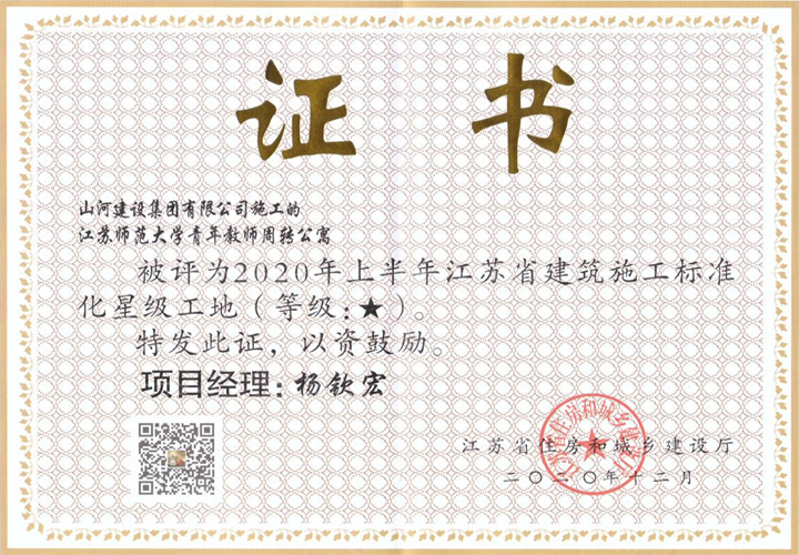 近日,从江苏省住房和城乡建设厅传来喜讯,米兰官方端网站建设集团江苏公司承建的江苏师范大学青年教师周转公寓工程被评为“2020年上半年江苏省建筑施工标准化星级工地”,再添一项省级荣誉。
