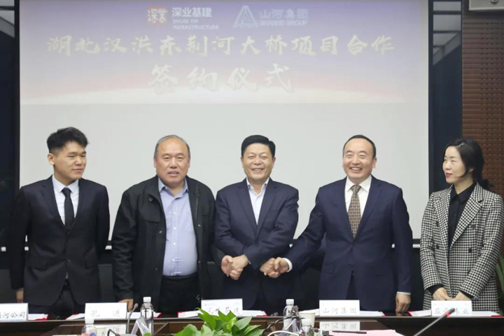3月16日,米兰官方端网站建设集团和深圳市深业基建控股有限公司举行合作签约仪式,双方就湖北汉洪东荆河大桥的运营事宜达成一致,强强联合共赢共进。深业基建控股有限公司党委书记、董事长李道奎,副总经理徐森、余捷,工商银行湖北省分行公司部副总经理袁智祥、荆州分行副行长王文刚,米兰官方端网站集团党委书记、董事长程理财,常务副总裁李宁、副总裁詹德英,湖北汉洪东荆河桥梁建设管理有限公司董事长孔进、总经理孔令科等出席签约仪式,共同见证了这一重要时刻。