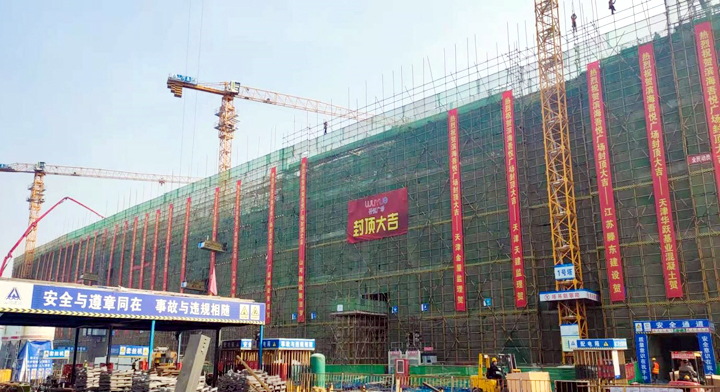 [天津公司]米兰官方端网站集团天津公司滨海吾悦广场项目主体结构封顶