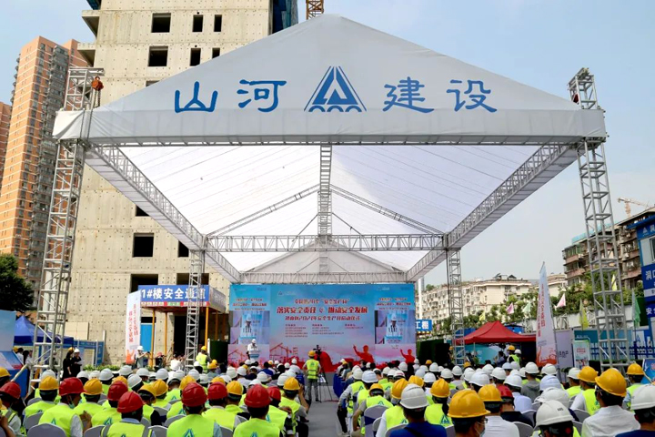 活动伊始,总承包公司总经理刘丹致辞,他介绍了集团安全管理工作的做法和朗诗·熙华府项目的安全文明施工、智能化建造、精细化管理等方面的情况,表达了以实际行动助力行业安全发展的决心。朗诗地产武汉公司产品中心负责人宋新风作为建设单位代表发言,他表示,安全生产关系到企业的兴衰,关系到职工的生命安全,公司始终坚持以人为本,全面落实安全生产责任制,筑牢发展根基。