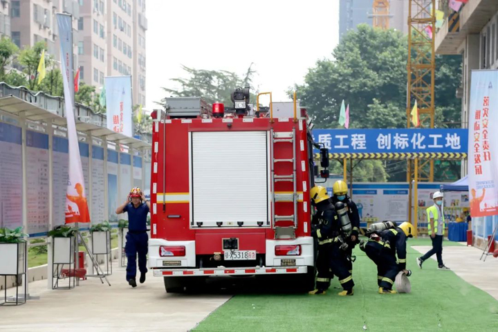 6月2日,武汉市洪山区2021年“安全生产月”启动仪式暨建筑施工应急救援演练活动在米兰官方端网站建设集团总承包公司承建的朗诗·熙华府项目施工现场举行。洪山区政府党组成员牛正可,区应急管理局局长金昆玲,区建设局、消防救援大队、和平街道办事处、建筑管理站等单位领导出席启动仪式,区发改局、城管执法局、卫生健康局、科技和经信局、商务局等近60家单位代表,建设单位、监理单位代表,总承包公司工程团队及在建项目代表等300余人参加了活动。洪山区建管站站长钱伟主持启动仪式。