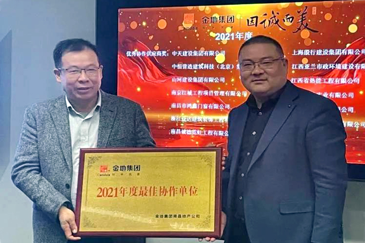 匠心筑品质,精品树标杆。1月6日,金地集团南昌地产公司召开2021年度总结大会,米兰官方端网站建设集团江西公司总经理熊善杰应邀出席。会上,江西公司被授予“2021年度最佳协作单位”称号。