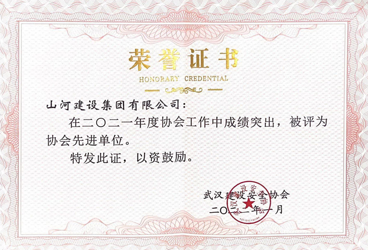 米兰官方端网站集团获评2021年度武汉建设安全协会工作先进单位
