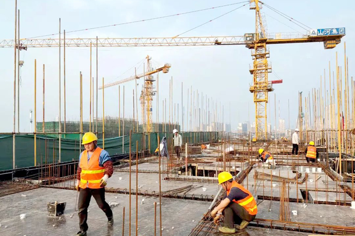 ▲东方碧桂园东方之珠项目二期工人在浇筑混凝土