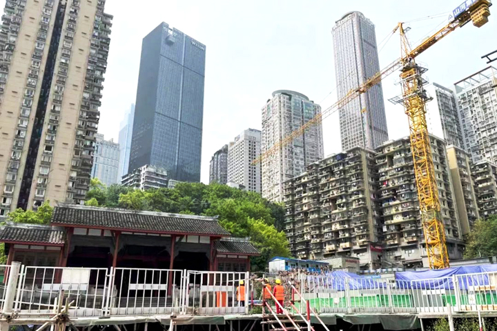 ▲重庆老鼓楼衙署遗址公园项目施工人员抓住晴好天气加紧施工