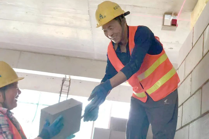 ▲重庆美的万麓府项目,合作默契的砌筑“夫妻档”