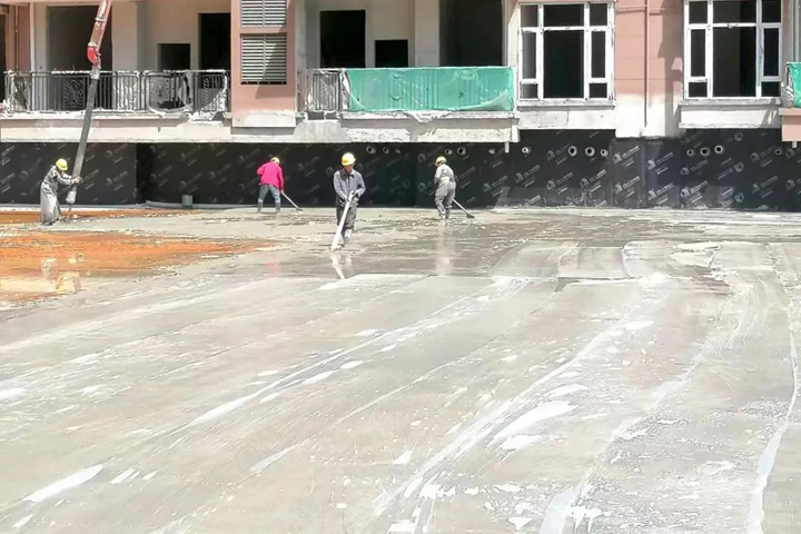 ▲信阳恒大御景湾项目工人进行地下室顶板防水保护层施工
