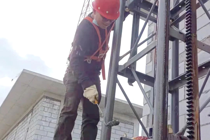 ▲宝鸡吾悦广场项目施工人员对电梯进行维保月检