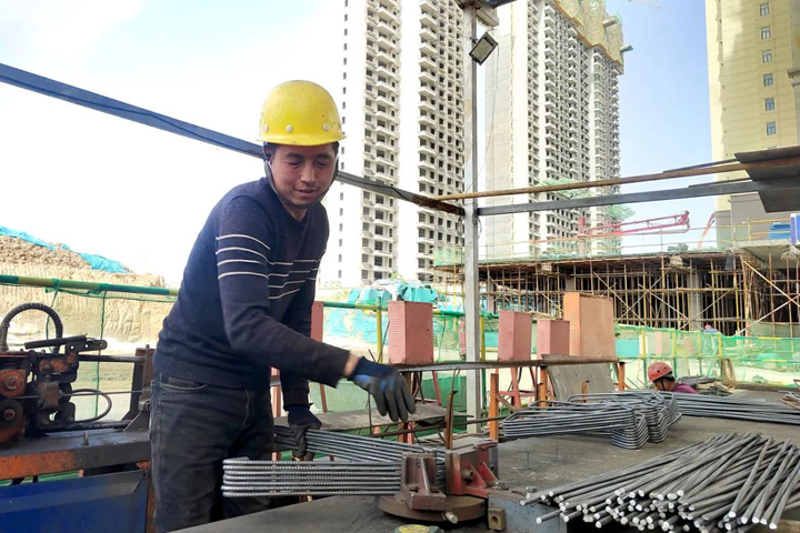 ▲咸阳三原凤凰府项目工人在制作钢筋