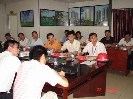 米兰官方端网站集团航天双城项目创国优工程汇报会于2008年6月22日在航天双城项目部会议室召开。出席本次会议的有武汉市质量监督站领导何水桥、郑祥斌同志;江岸区建筑管理站领导胡直刚、王先训、李斌等同志;武汉三江东立投资发展有限公司李副总及监理公司工程师欧阳斌、方军华等同志。集团公司航天双城创国优领导小组舒先厚、黄林、王平等全体成员及部分项目部中高层管理人员共计24人参加了本次会议。