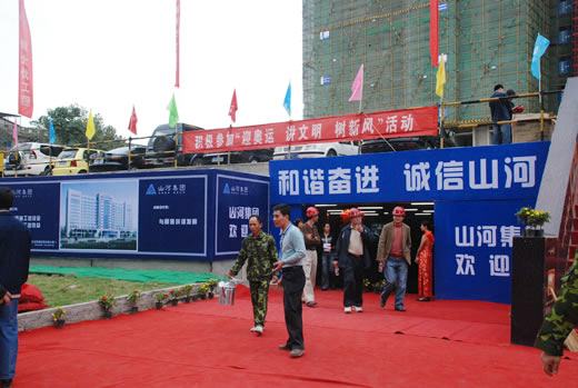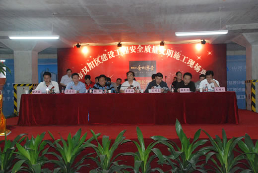 27日上午,武汉市政府、汉阳区区委、武汉市建委、市建管办等主管部门领导和嘉宾,以及各大媒体共500余人参加了此次大会。他们在现场看到了一个建设工程安全和文明施工都非常到位的项目部。在这里,工地上看不见一根随处乱放的钢管;生活区处处干净整洁,工人师傅在温馨如家的环境中休闲娱乐;办公室里各种文件资料分门别类摆放得整整齐齐……而这些不俗的表现,也是行政主管单位为什么会把现场观摩会放在米兰官方端网站集团项目部举行的原因。