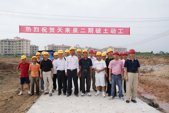 10月7日上午9时,琼海官塘,艳阳高照。简短而热烈的开工仪式后,机器轰鸣,鞭炮齐响。由我公司承建的海南第一楼“琼海天来泉度假中心二期”正式破土动工。