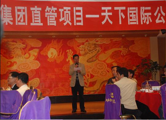 天下国际公馆项目部是我公司顺应时代发展,企业改革,根据市场需求特别设立的直管型项目部,徐友明担任项目经理。项目在集团公司的直接管理、直接指导下,经过两年的施工建设,今天终于竣工了。为此集团公司特地组织大批项目经理在现场举行了一个现场交流观摩会,天下国际公馆还创造了我公司建造的单体面积最大,地下室面积最大,地下室建筑难度最高的新纪录。